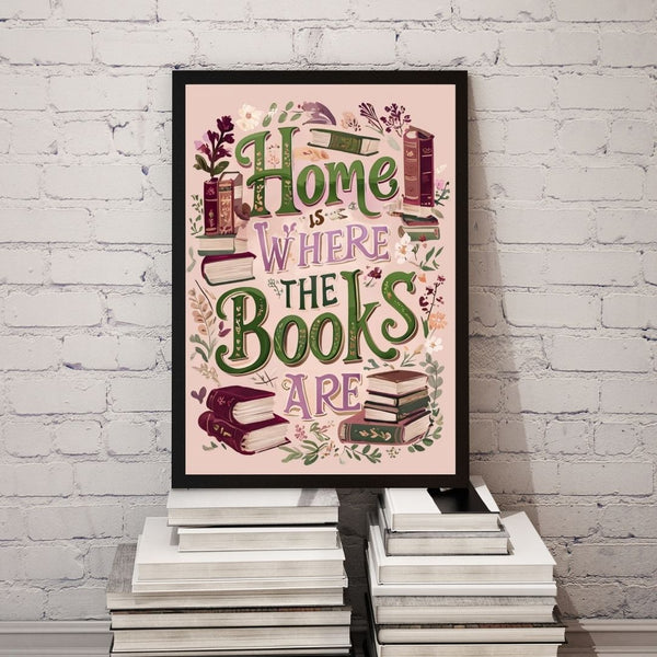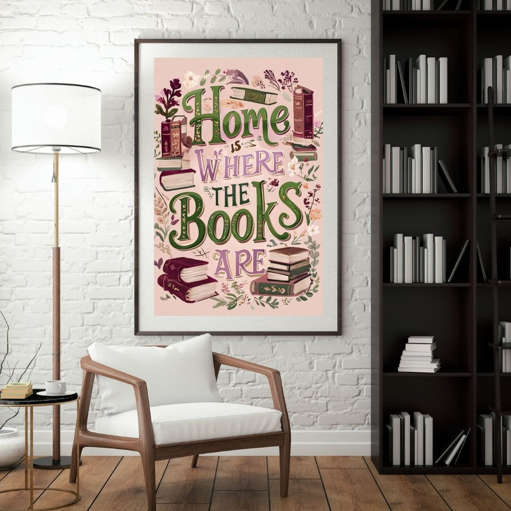 Cozy Bookish Wall Art - "Home is Where the Books Are" Twilight Color Palette | Printable & Digital Art for Readers, Cottagecore Home Decor